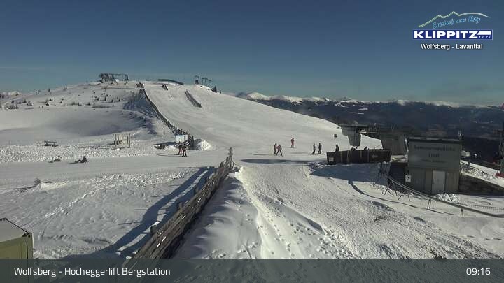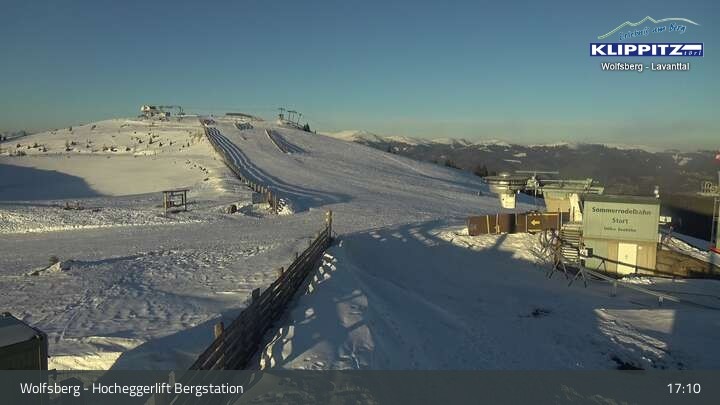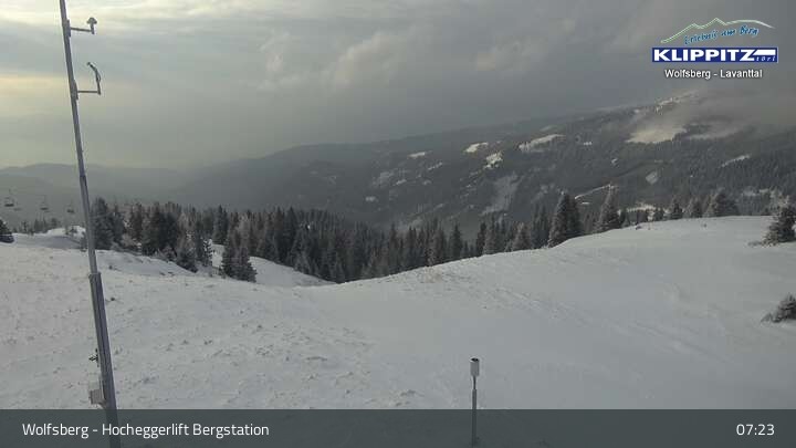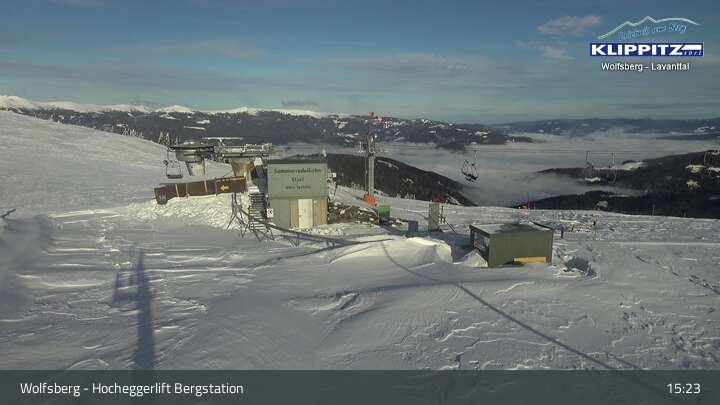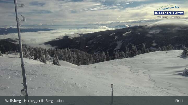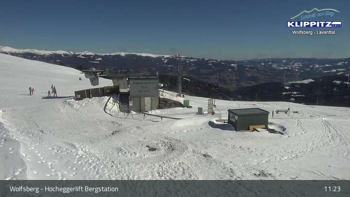 Hier siehst du den Ausblick von der Bergstation Klippitztörl über den Sessellift und die angrenzenden Pisten.