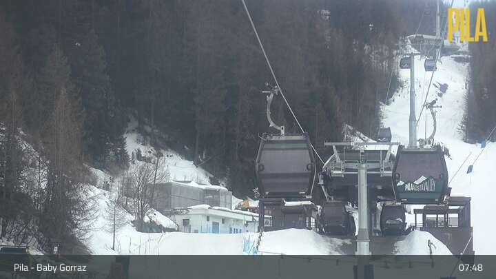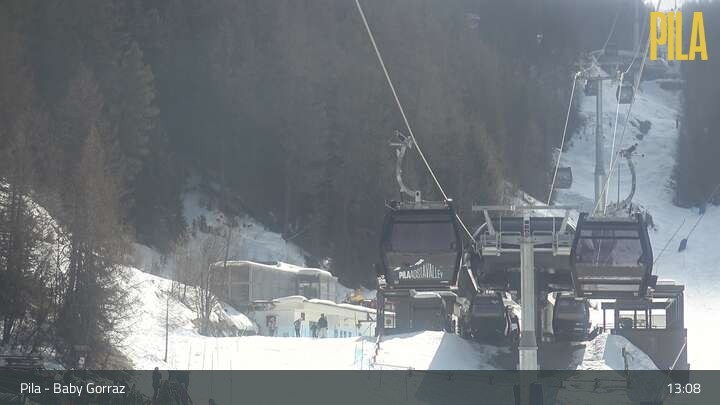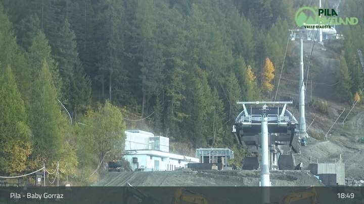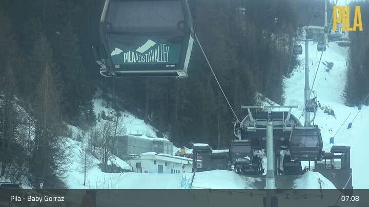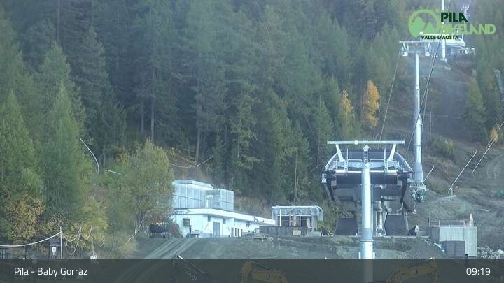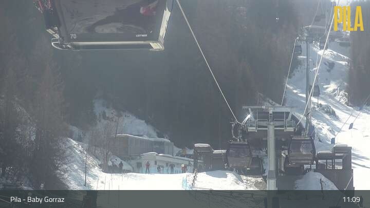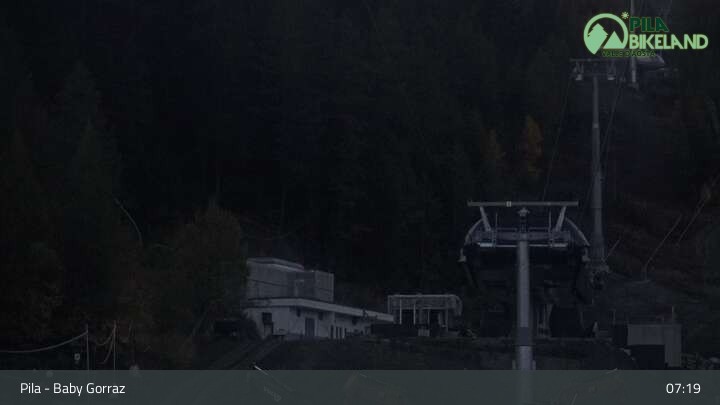 Die Webcam in Pila blickt vom Zauberteppich Baby Gorraz aus auf den Sessellift Gorraz und die umliegenden Berge.