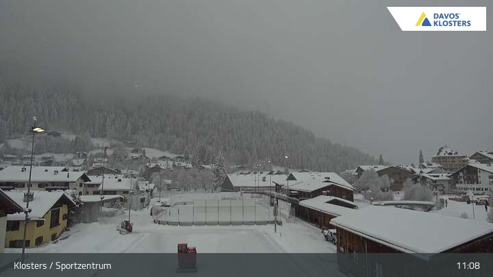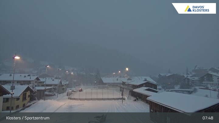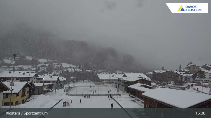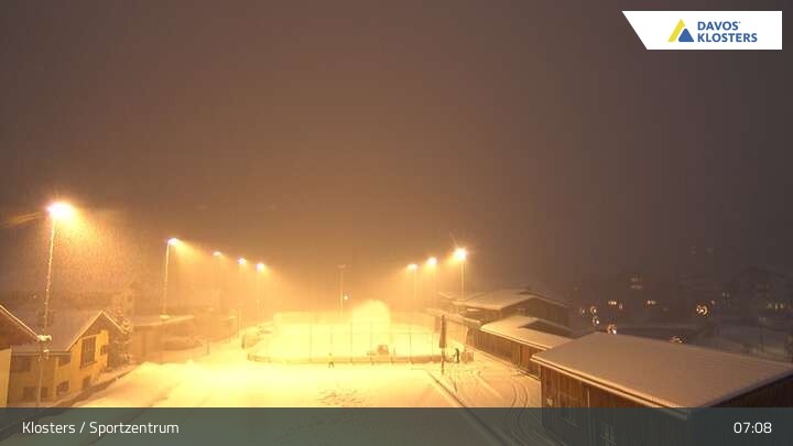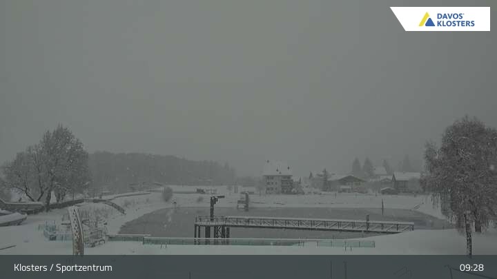Hier siehst du das Sportzentrum und das Freibad in Klosters