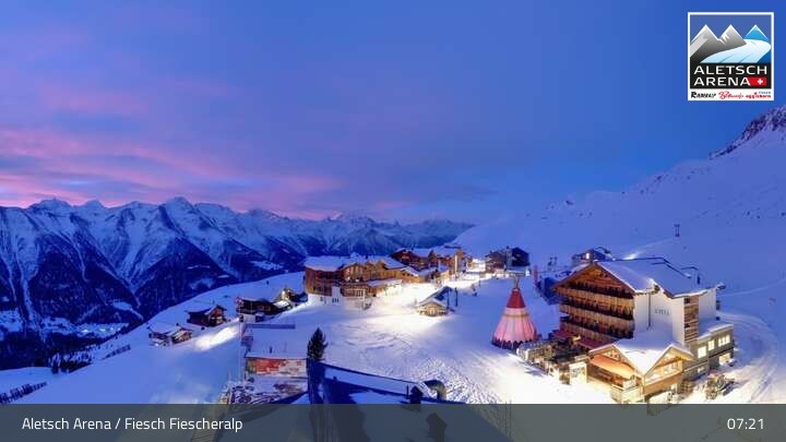 Webcam Aletsch Arena: Blick auf die Fiescheralp, 2,220 m
