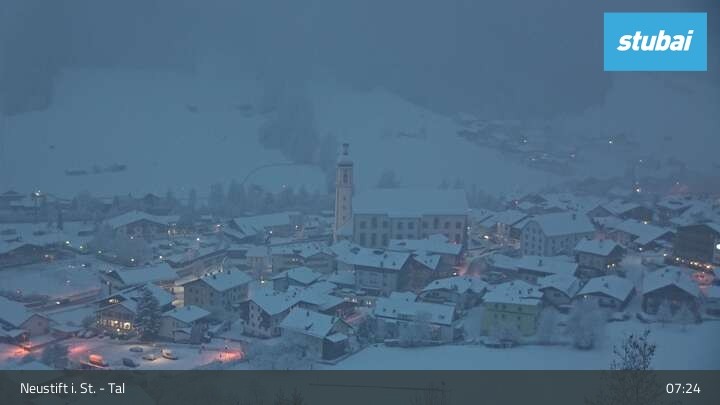 Die Webcam blickt auf den kleinen Ort Neustift im Stubaital.