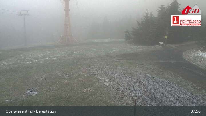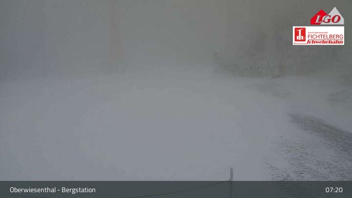 The webcam is located at the top station at the ski resort of Oberwiesenthal Fichtelberg. From there, it looks down upon Oberwiesenthal.