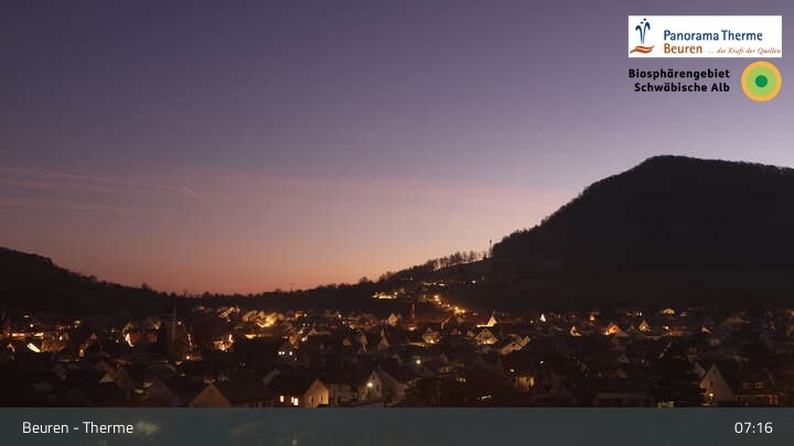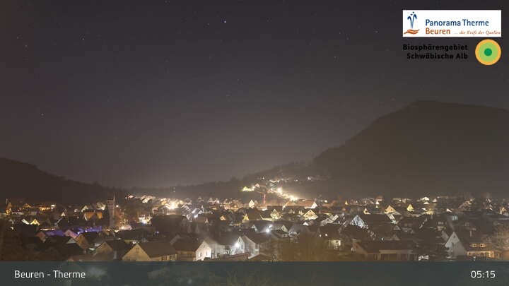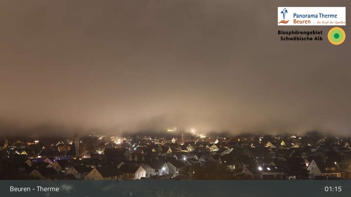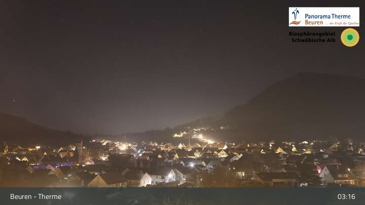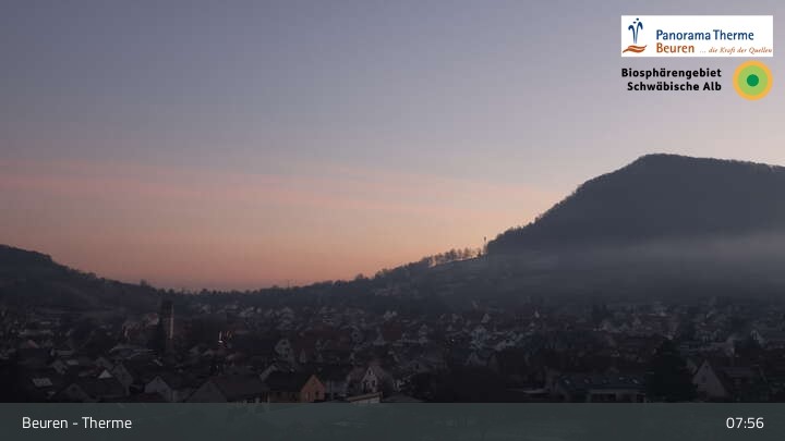Blick über Beuren in der Schwäbischen Alb. Die Webcam befindet sich in der Panorama Therme Beuren.