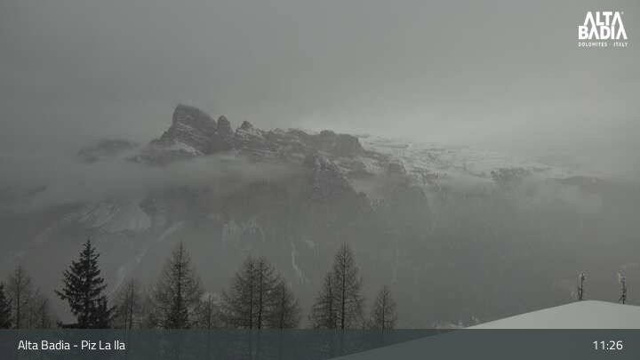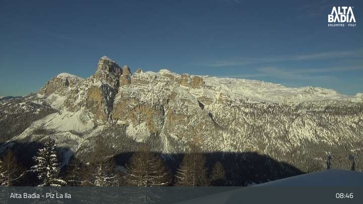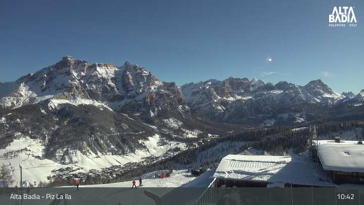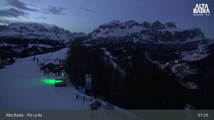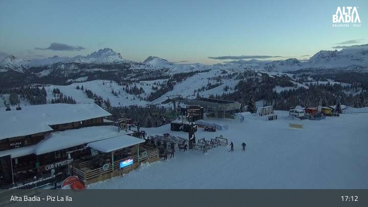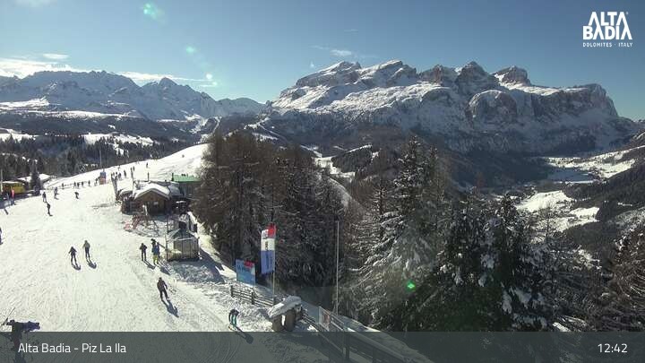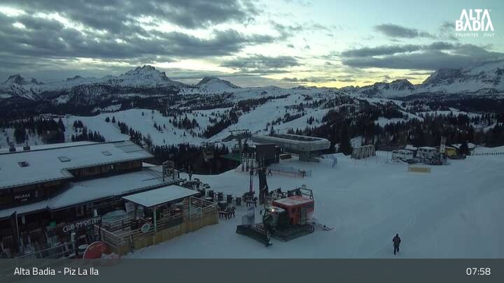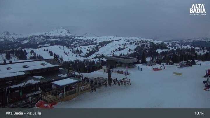 Zu sehen ist die Bergstation des Sessellifts Bamby am Piz La Ila mit Blick zum Marmolada Gletscher