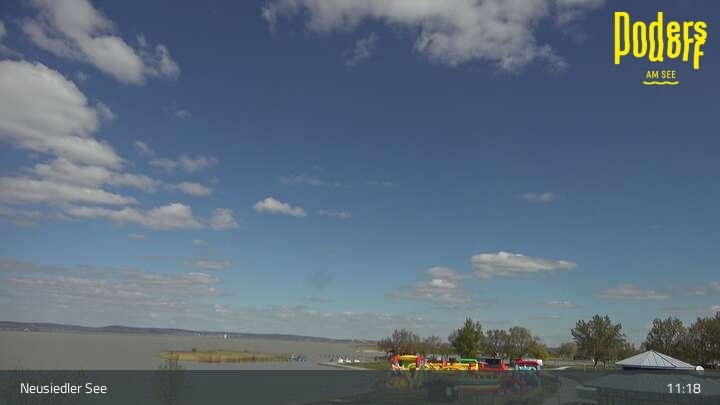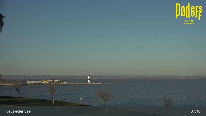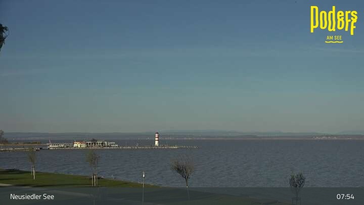 Vom Ort Podersdorf aus blickst du auf den Neusiedler See im österreichischen Bundesland Burgenland.