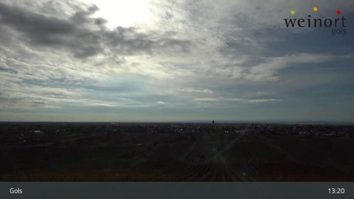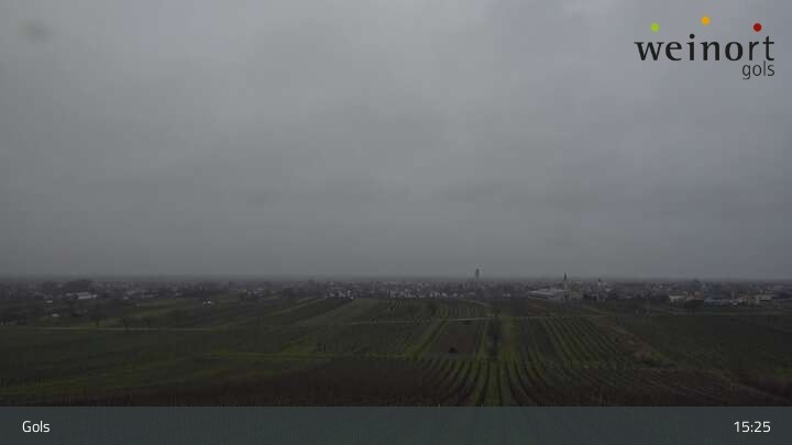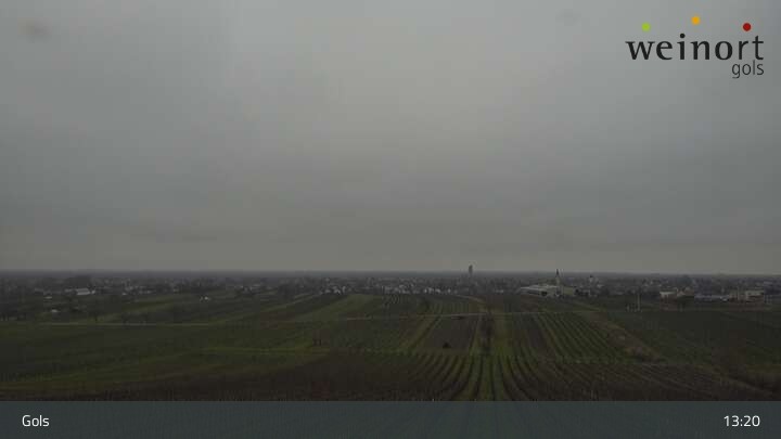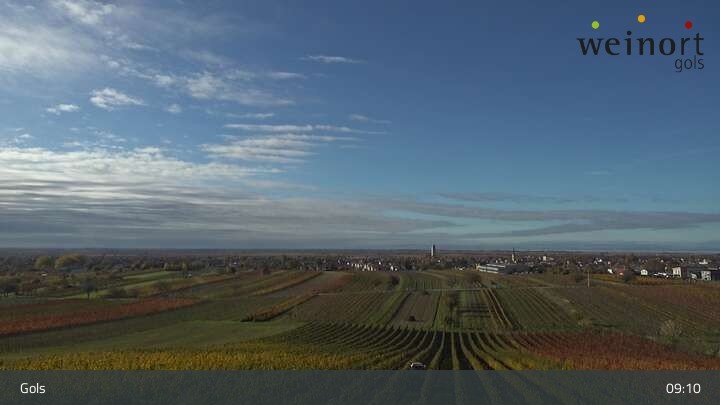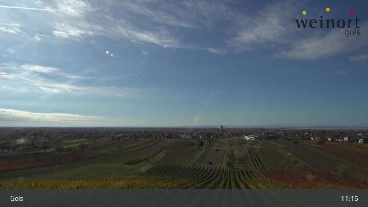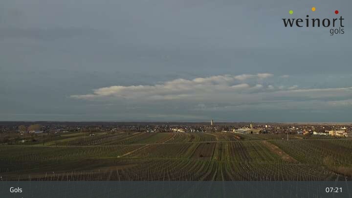 Über die Weinberge hinweg blickt die Webcam auf den Ort Gols im Burgenland.