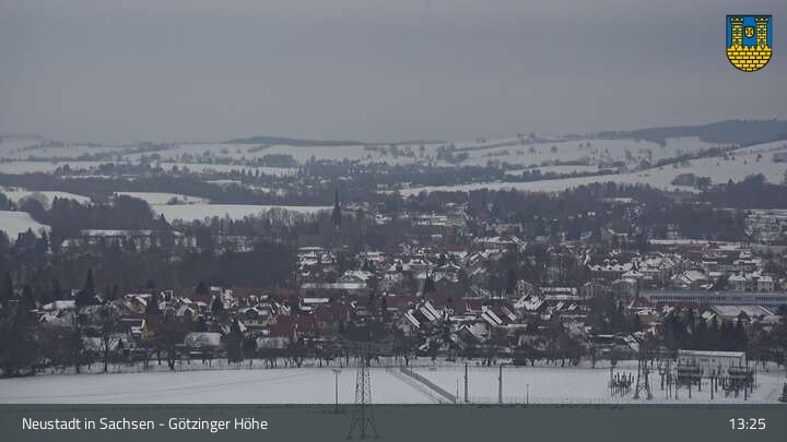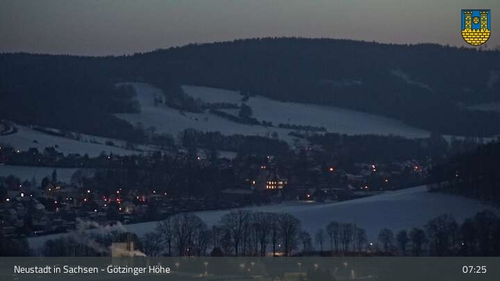 Hier siehst du Neustadt in Sachsen, eine Kleinstadt im Elbsandsteingebirge. Die Webcam befindet sich südlich der Stadt an der Götzinger Höhe.