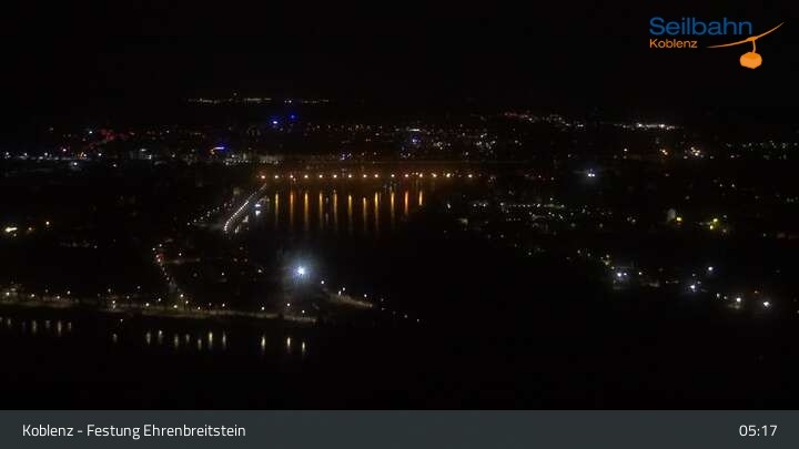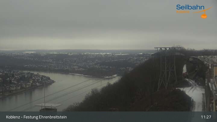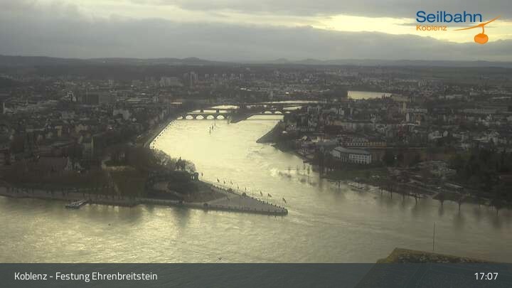 Webcam Koblenz: Blick von der Festung auf Seilbahn und Deutsches Eck, 160 m
