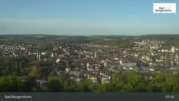 Diese Webcam zeigt dir den Stadtkern von Bad Mergentheim vom nordöstlich gelegenen Ketterberg aus. Bekannt ist die Stadt mit dem Heilwasser durch die Solymar Therme und den Wildpark Bad Mergentheim.