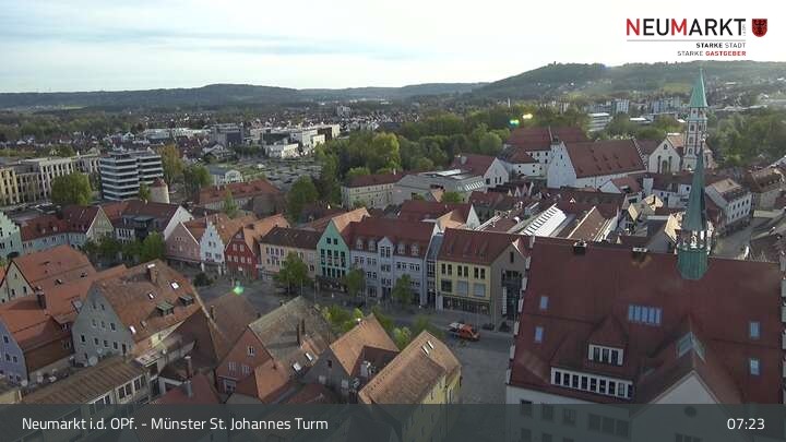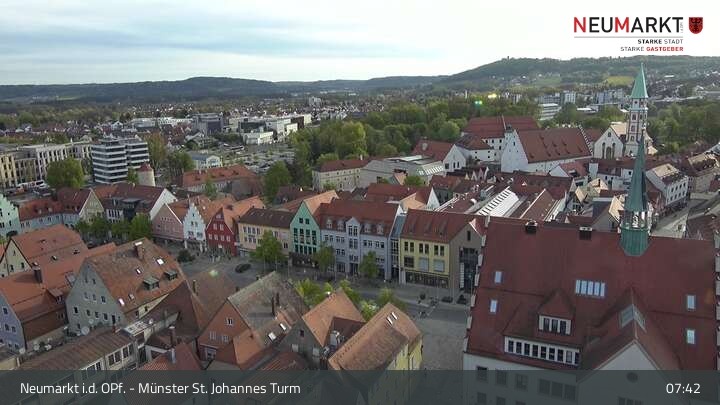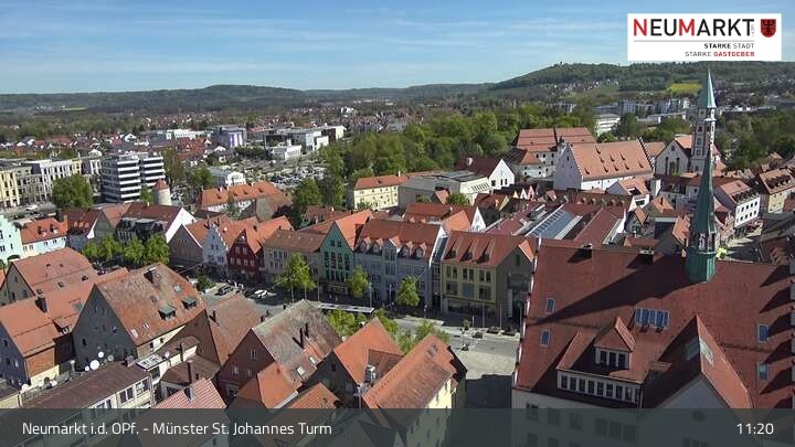 Die Webcam befindet sich am Turm der St. Johannes Kirche in Neumarkt in der Oberpfalz und zeigt einen tollen Panoramablick über die Stadt.