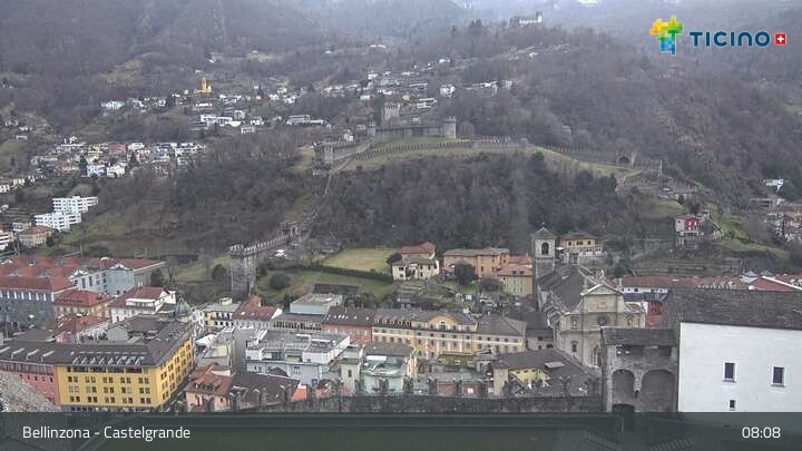 Die Webcam blickt auf die Höhenburg Castelgrande in Bellinzona, dem Hauptort des Kantons Tessin in der Schweiz. Sie gehört seit 2000 zum UNESCO Weltkulturerbe.