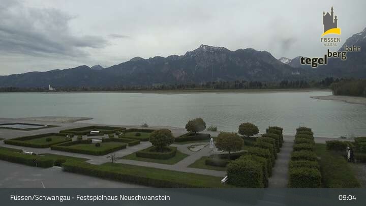 Die Webcam blickt auf den Garten von Ludwigs Festspielhaus in Füssen am Forggensee.