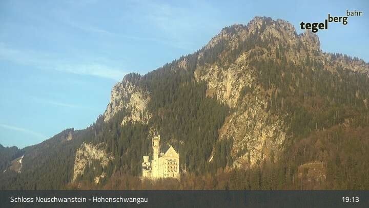 Die Kamera befindet sich am Schloss Hohenschwangau und schwenkt vom Schloss Neuschwanstein zum Museum der Bayerischen Könige.