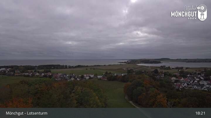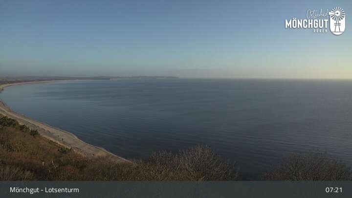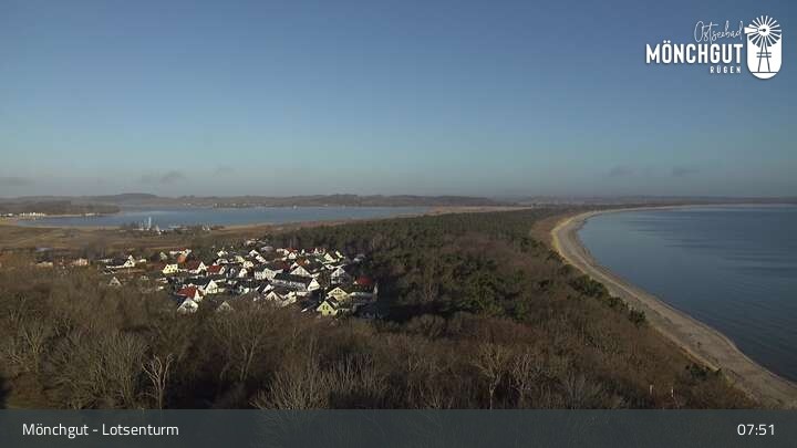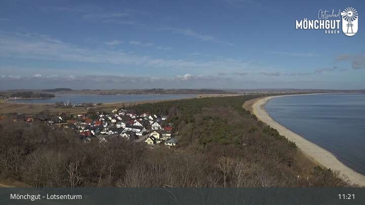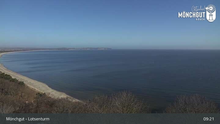 Die Webcam ist am Lotsenturm bei Thiessow positioniert und zeigt den Blick auf die Halbinsel Mönchgut, die zu Rügen gehört und an der Ostsee liegt.
