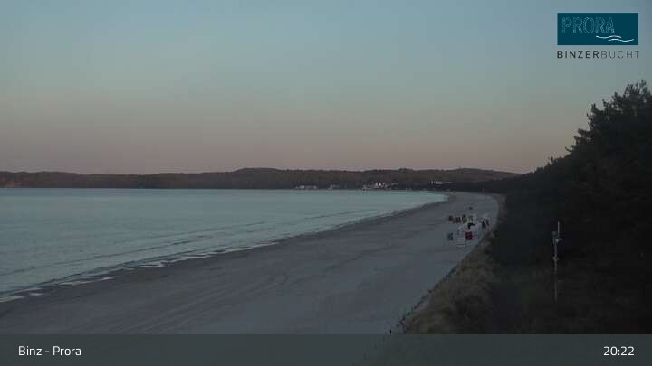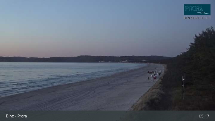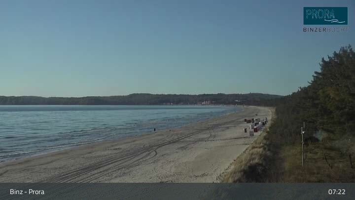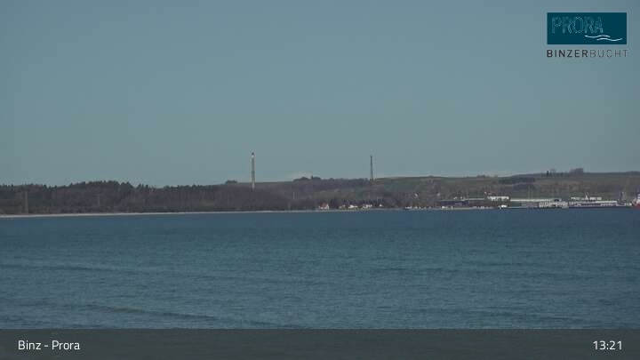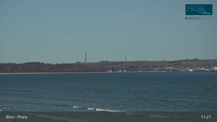Die Kamera befindet sich auf der Insel Rügen am Strand von Prora und blickt über die Binzer Bucht.