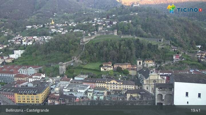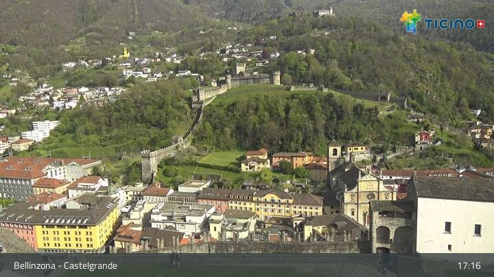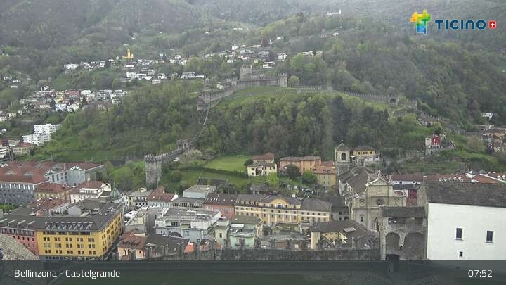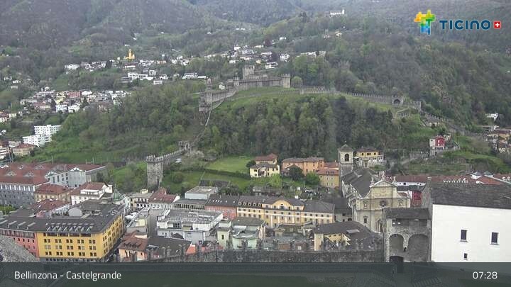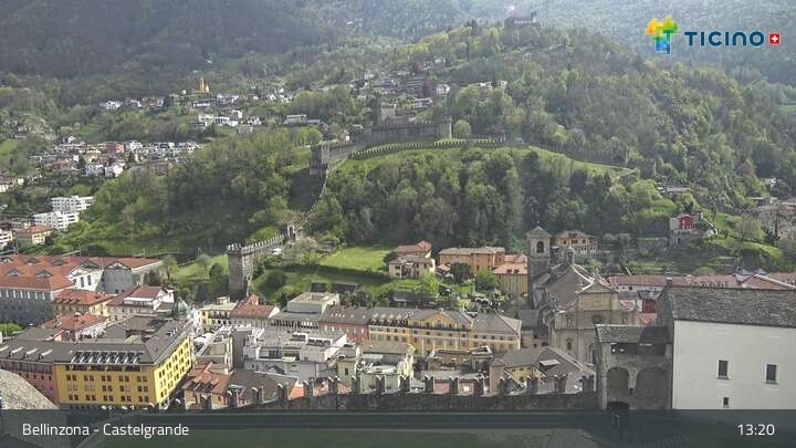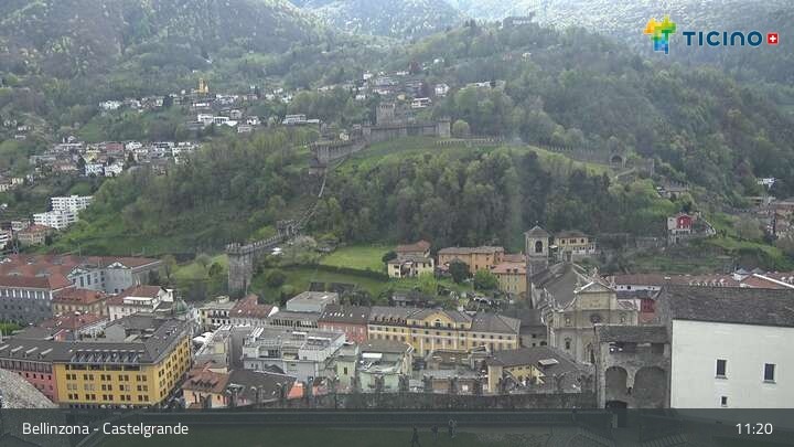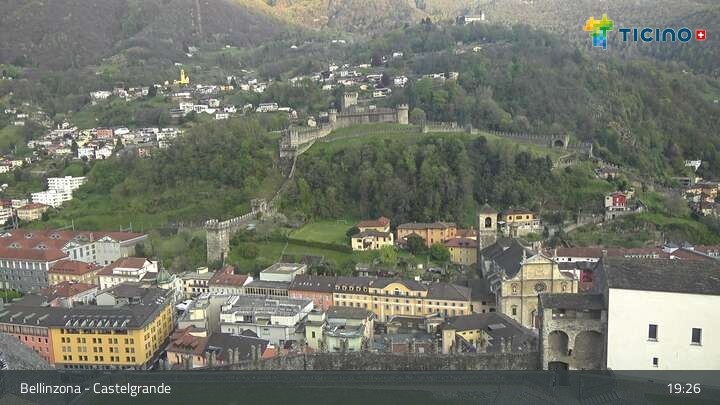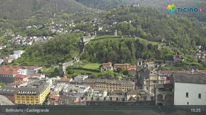 Die Webcam blickt auf die Höhenburg Castelgrande in Bellinzona, dem Hauptort des Kantons Tessin in der Schweiz. Sie gehört seit 2000 zum UNESCO Weltkulturerbe.
