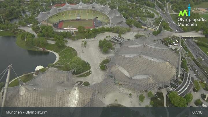Im nordwestlichen Teil der Münchner Innenstadt befindet sich am Olympiaturm diese Webcam mit dem direkten Blick auf den Olympiapark. Zu sehen sind unter anderem das Olympiastadion und die Olympiahalle, beliebte Orte für Veranstaltungen und Konzerte. Wichtiger Hinweis: Bei großen Veranstaltungen kann es sein, dass die Webcam vorübergehend deaktiviert wird.