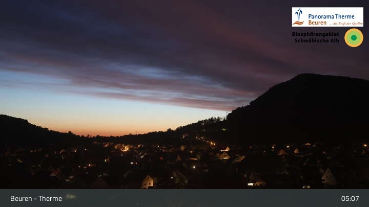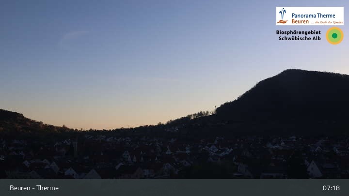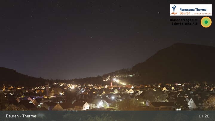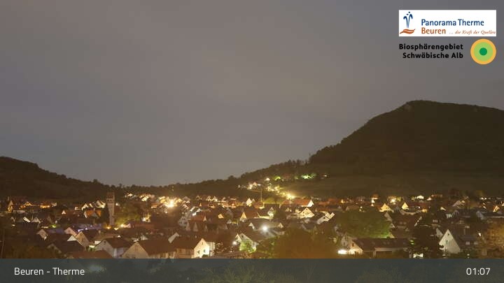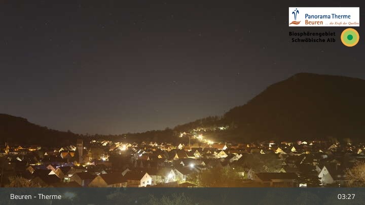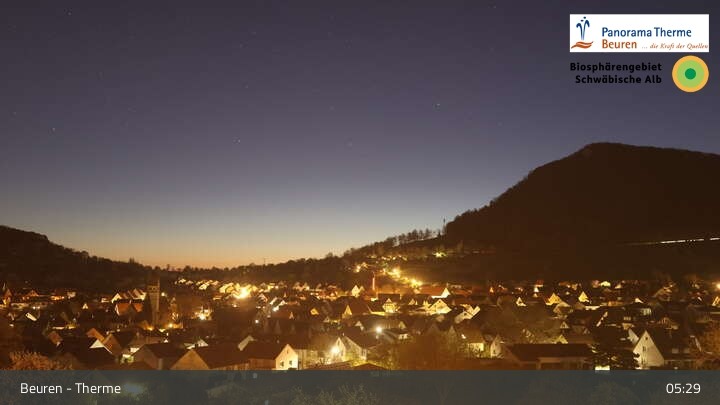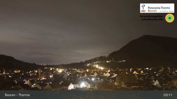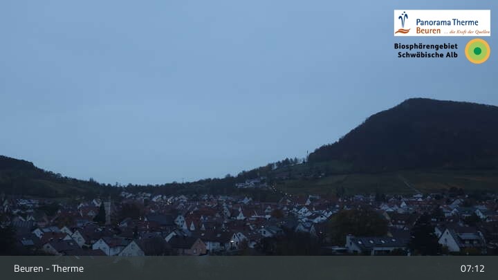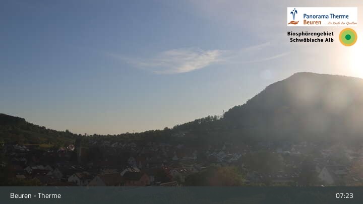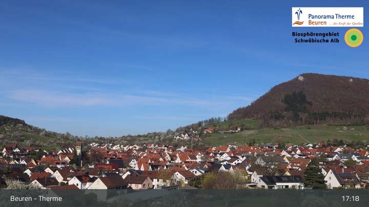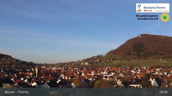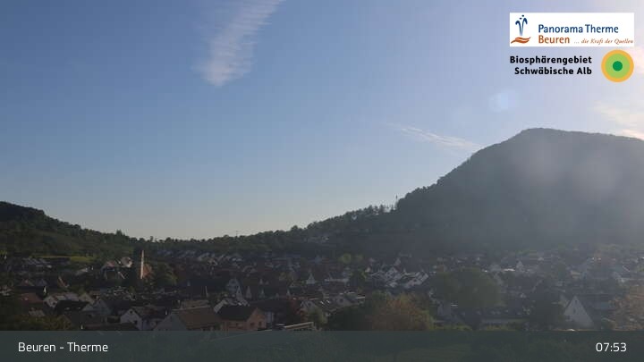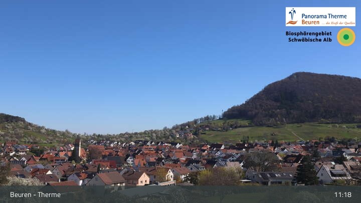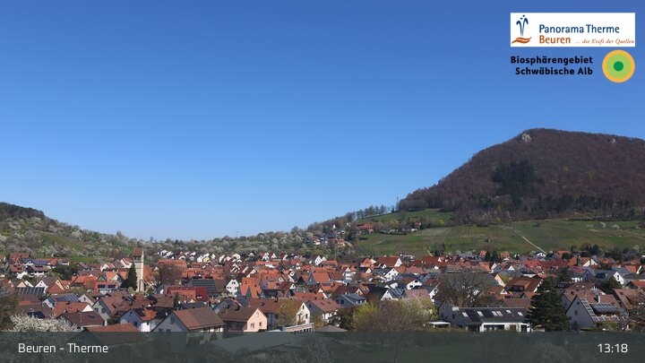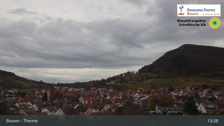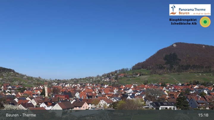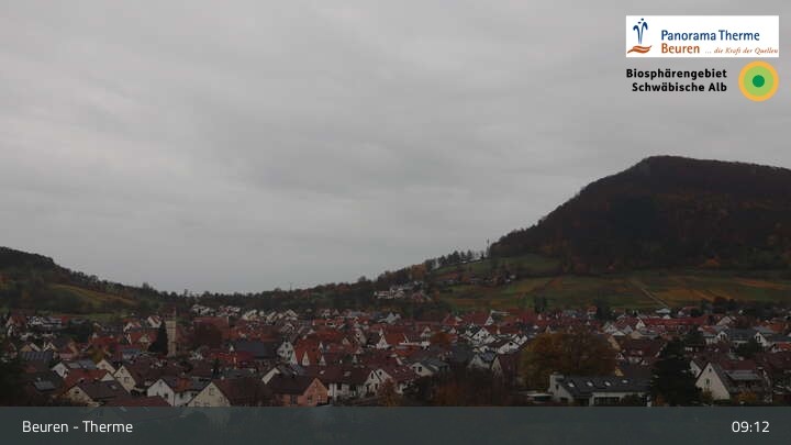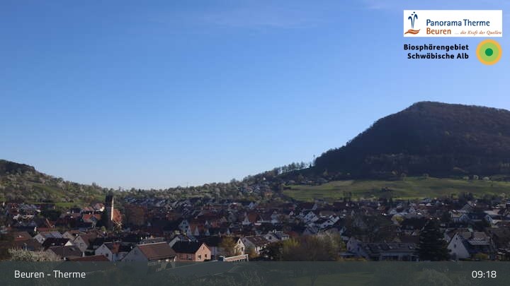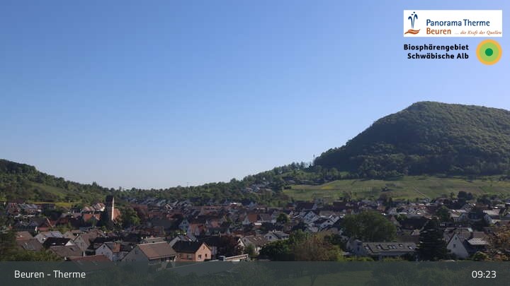 Blick über Beuren in der Schwäbischen Alb. Die Webcam befindet sich in der Panorama Therme Beuren.