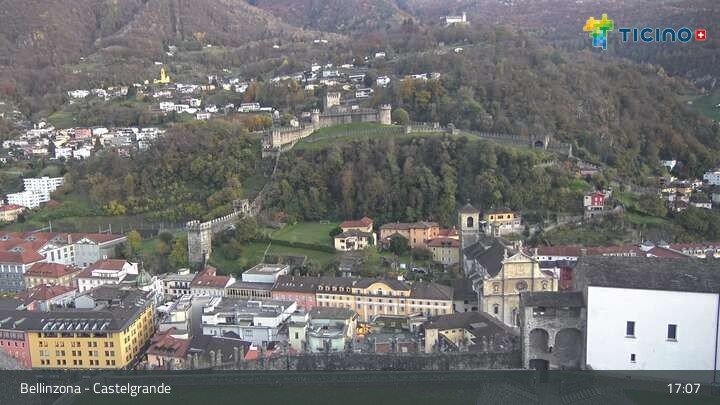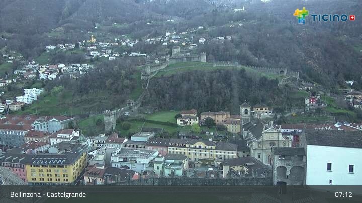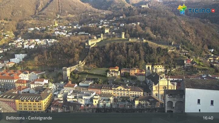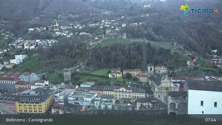 Die Webcam blickt auf die Höhenburg Castelgrande in Bellinzona, dem Hauptort des Kantons Tessin in der Schweiz. Sie gehört seit 2000 zum UNESCO Weltkulturerbe.