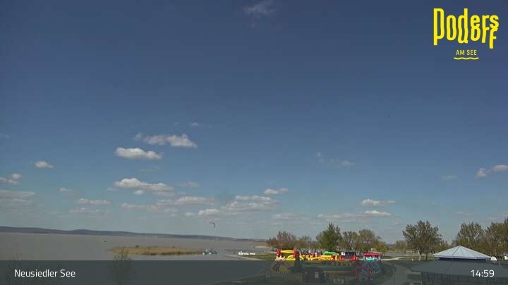 Vom Ort Podersdorf aus blickst du auf den Neusiedler See im österreichischen Bundesland Burgenland.