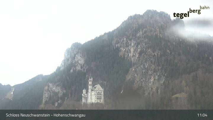 Die Kamera befindet sich am Schloss Hohenschwangau und schwenkt vom Schloss Neuschwanstein zum Museum der Bayerischen Könige.