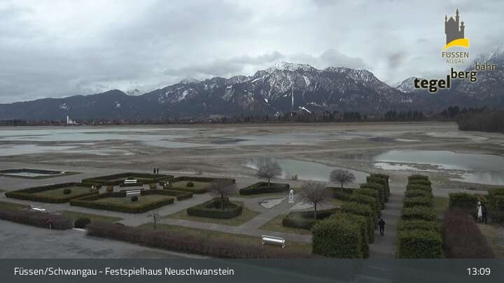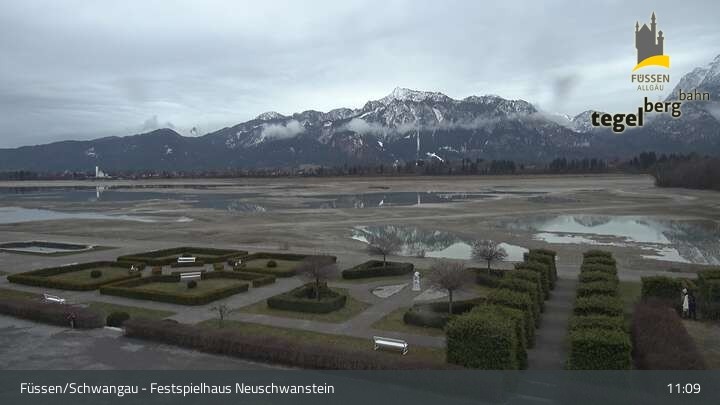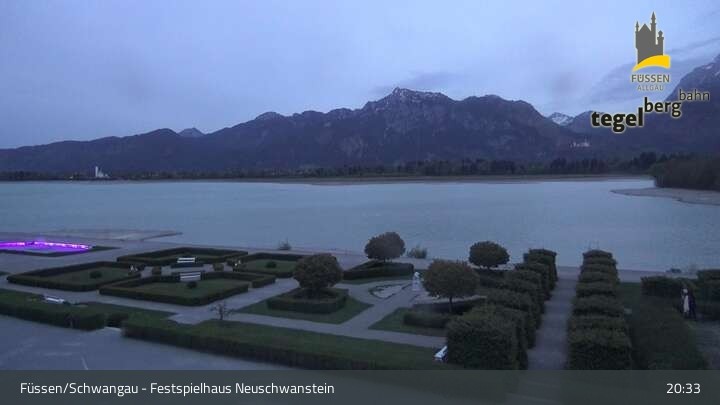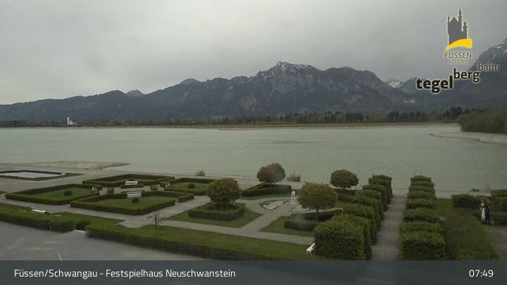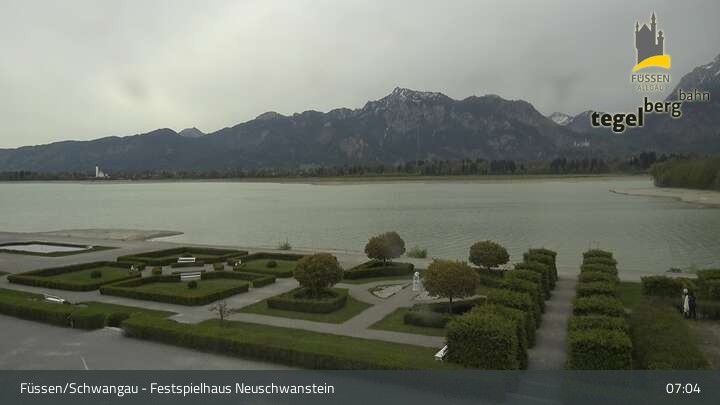 Die Webcam blickt auf den Garten von Ludwigs Festspielhaus in Füssen am Forggensee.