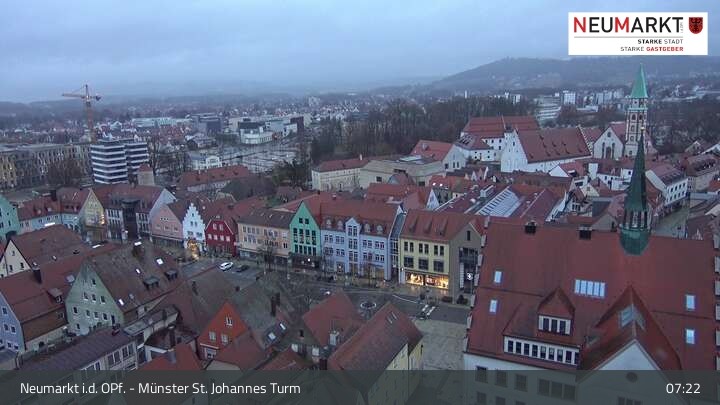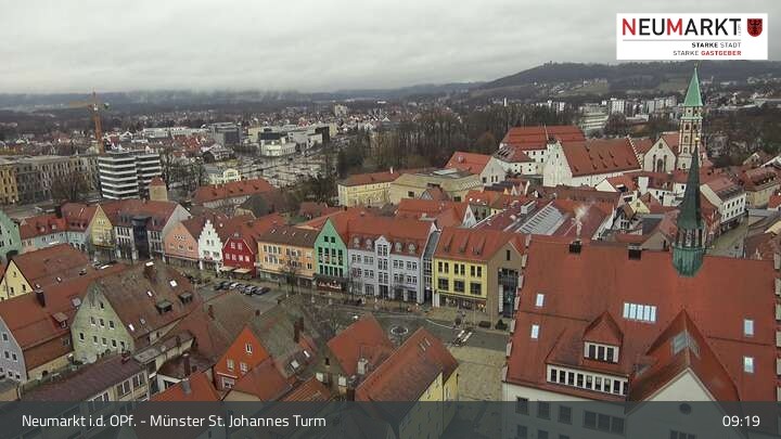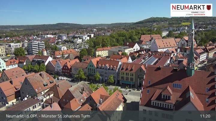 Die Webcam befindet sich am Turm der St. Johannes Kirche in Neumarkt in der Oberpfalz und zeigt einen tollen Panoramablick über die Stadt.