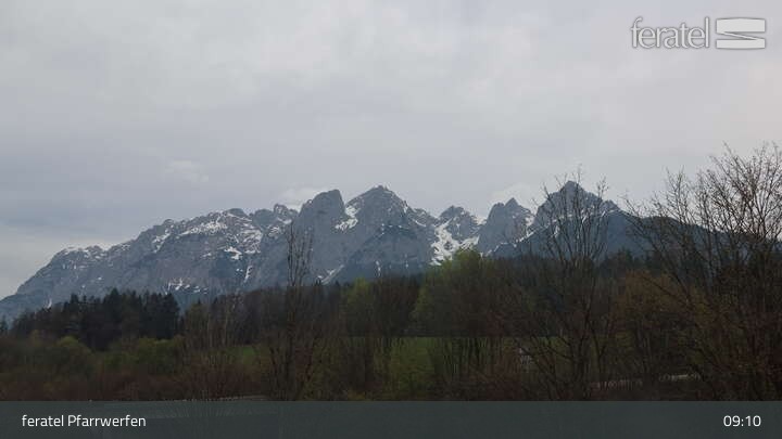Blick von Pfarrwerfen, unter anderem auf die Burg Hohenwerfen.