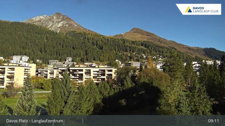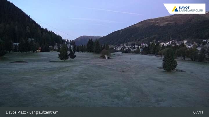 Blick auf den Golfplatz in Davos. Im Winter befindet sicher hier das Langlaufzentrum.