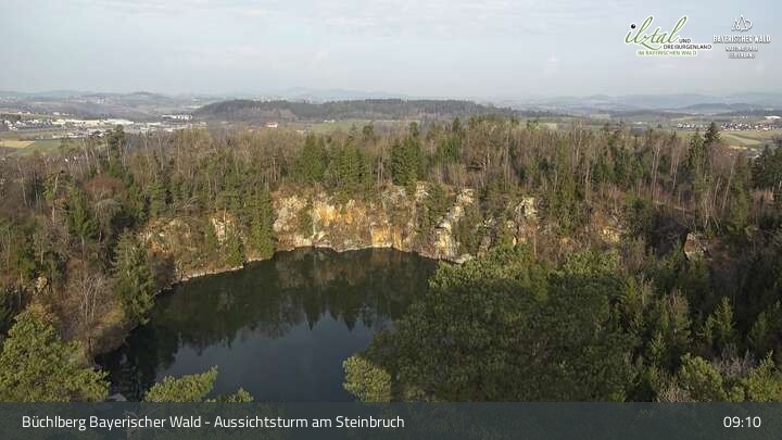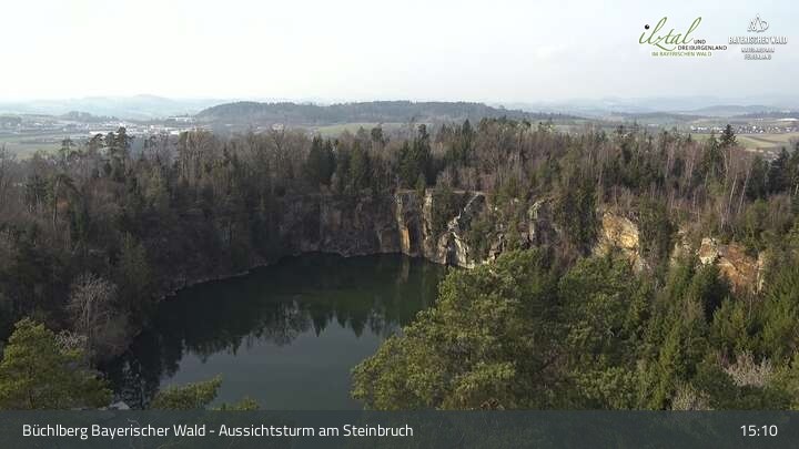 Webcam Büchlberg und Steinbruchsee vom Aussichtsturm, 527 m