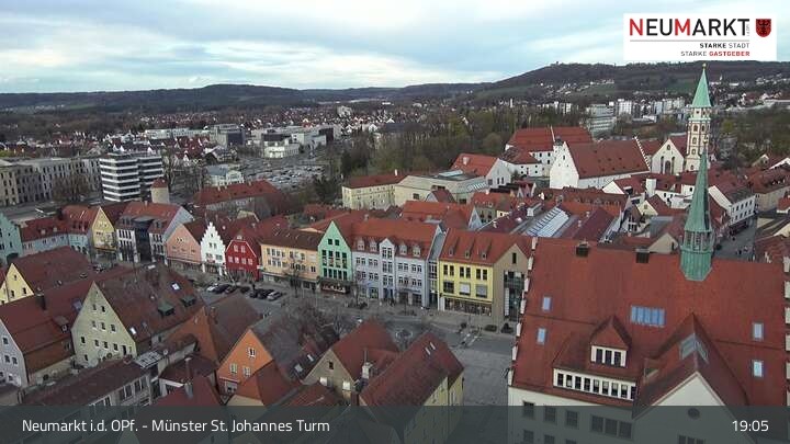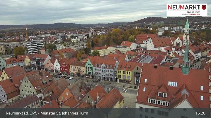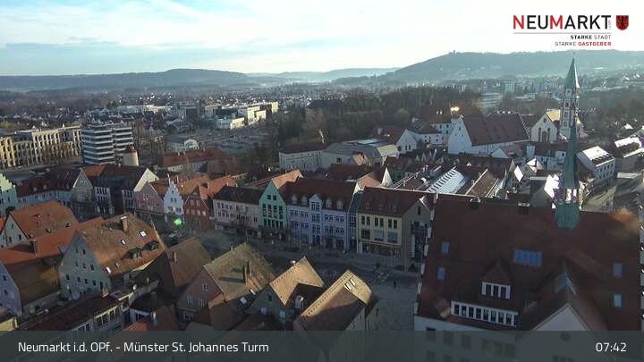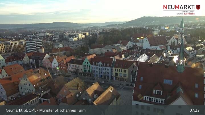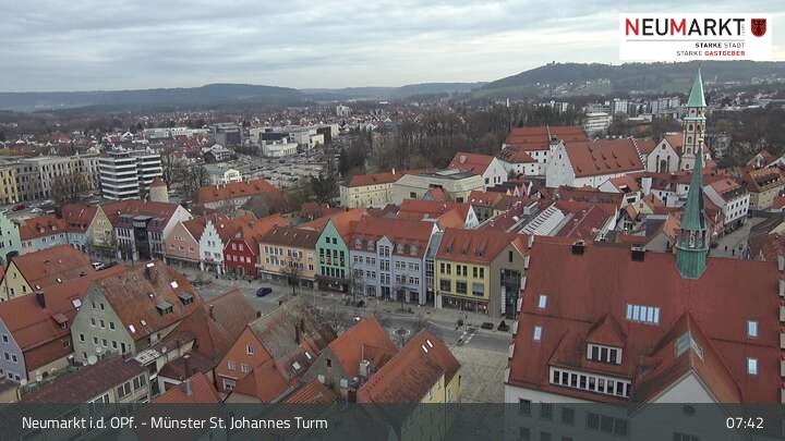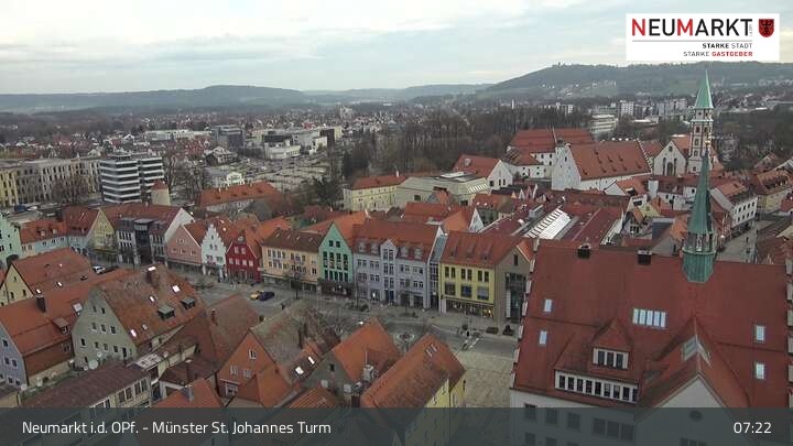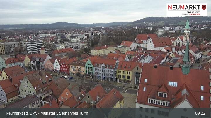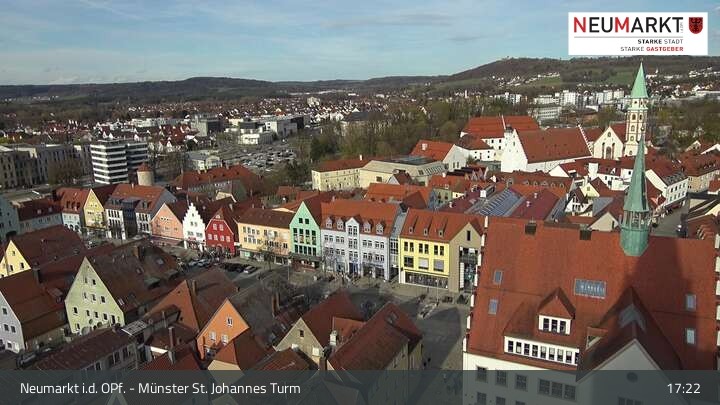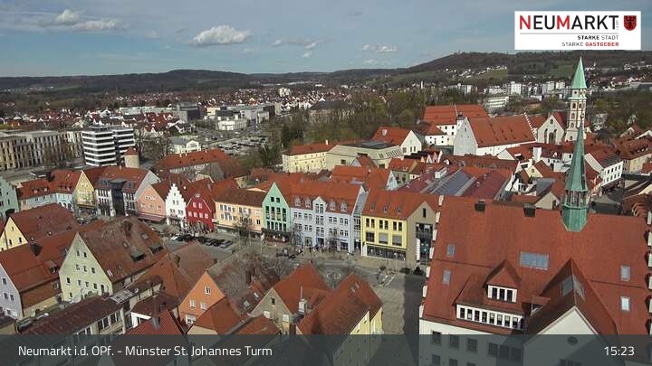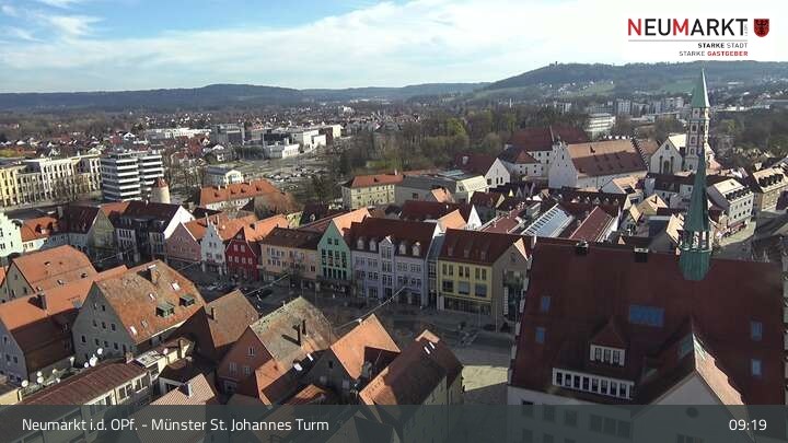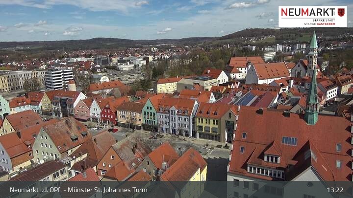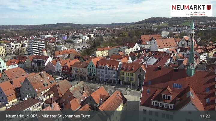 Die Webcam befindet sich am Turm der St. Johannes Kirche in Neumarkt in der Oberpfalz und zeigt einen tollen Panoramablick über die Stadt.
