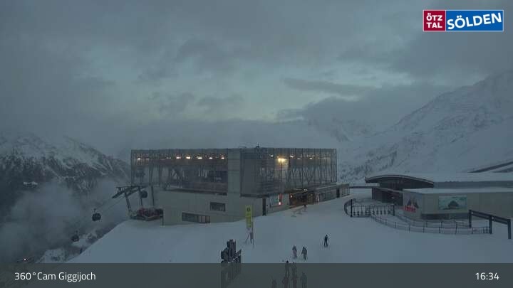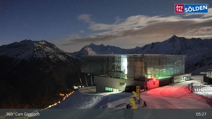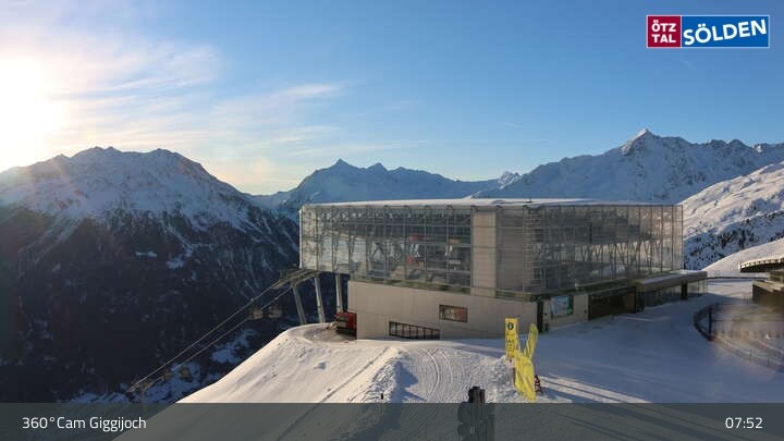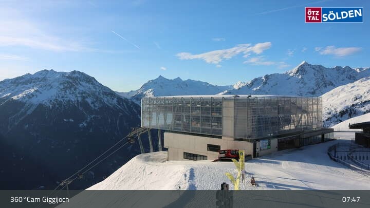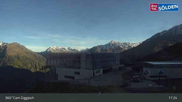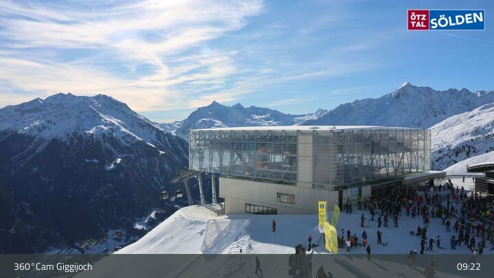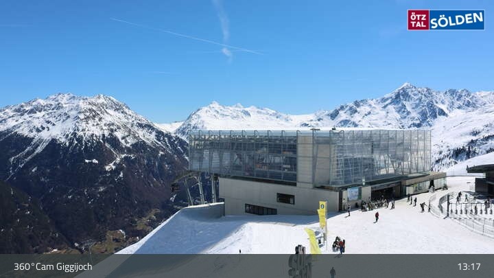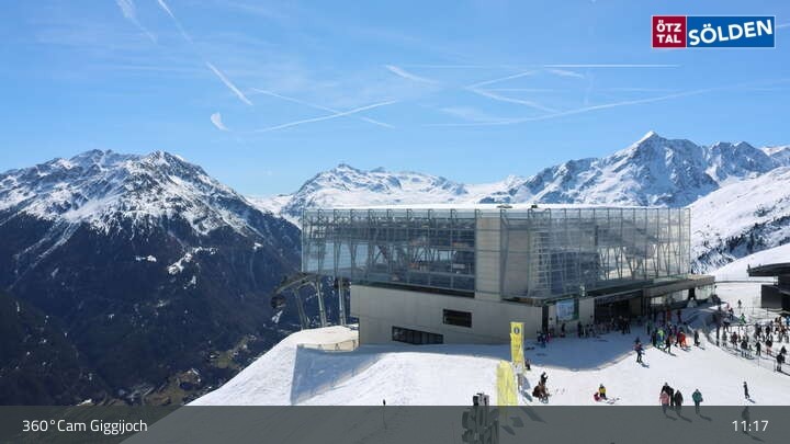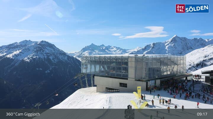 Blick vom Giggijoch auf die Bergbahnen sowie die umliegendeAlpenwelt von Sölden.