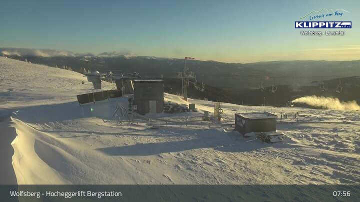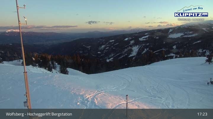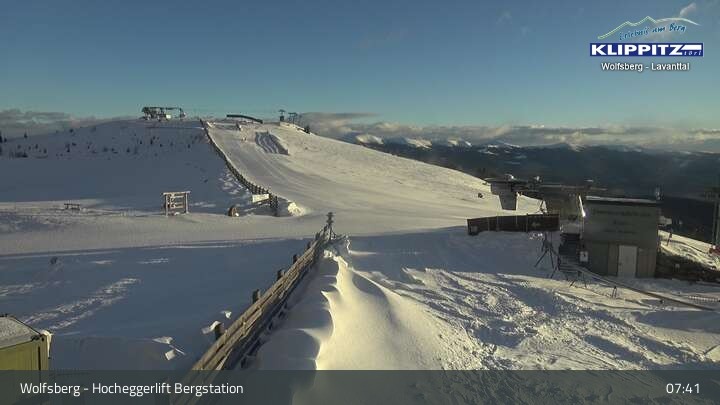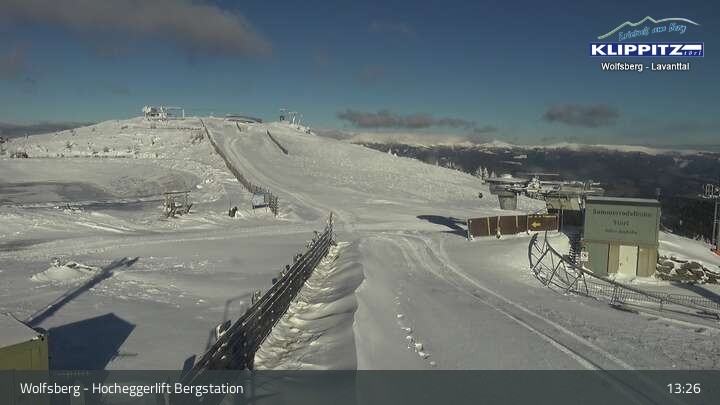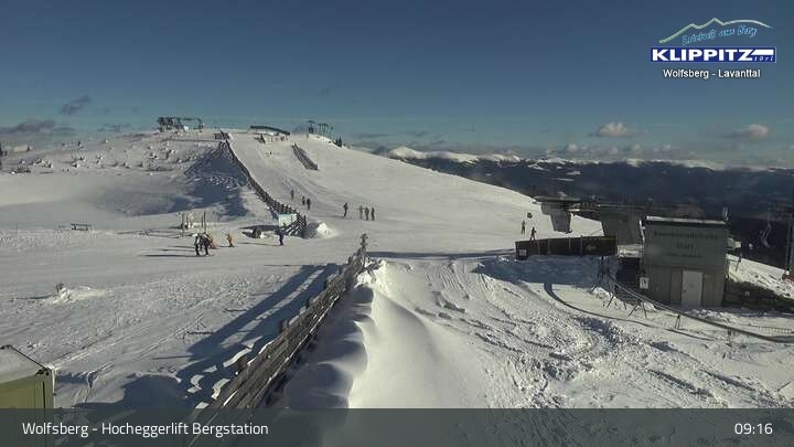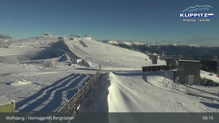Hier siehst du den Ausblick von der Bergstation Klippitztörl über den Sessellift und die angrenzenden Pisten.