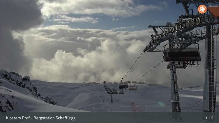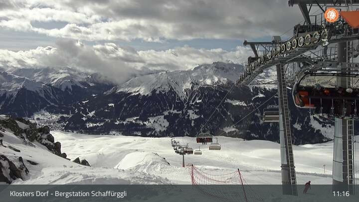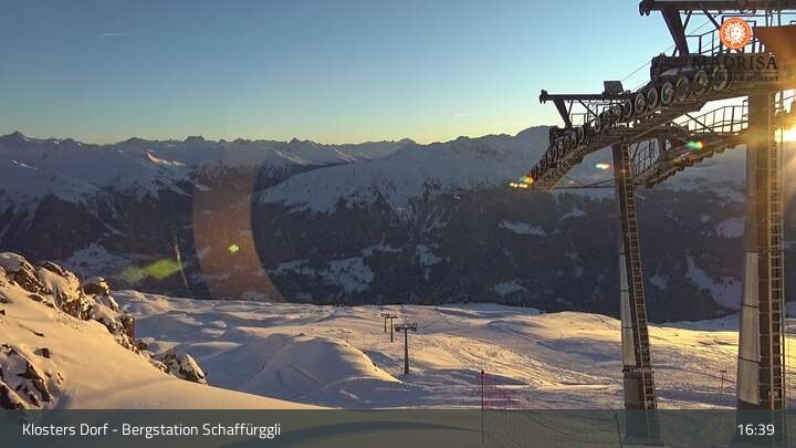 Diese Webcam zeigt die Bergstation des Schaffürggli Lifts auf der Madrisa. Der 2.770 m hohe Berg in den schweizer Alpen bietet vielfältige Wander- und Erlebniswege.