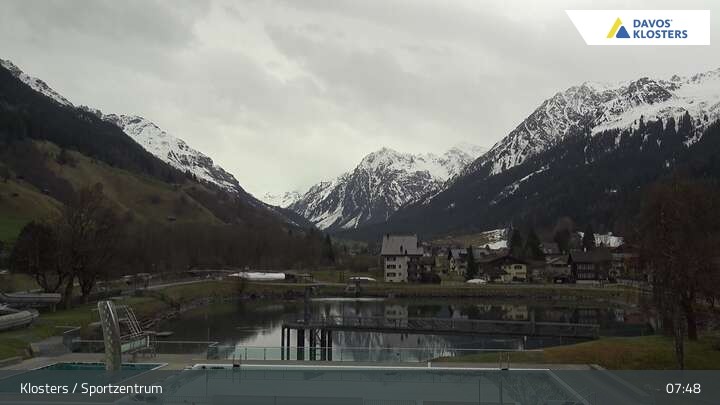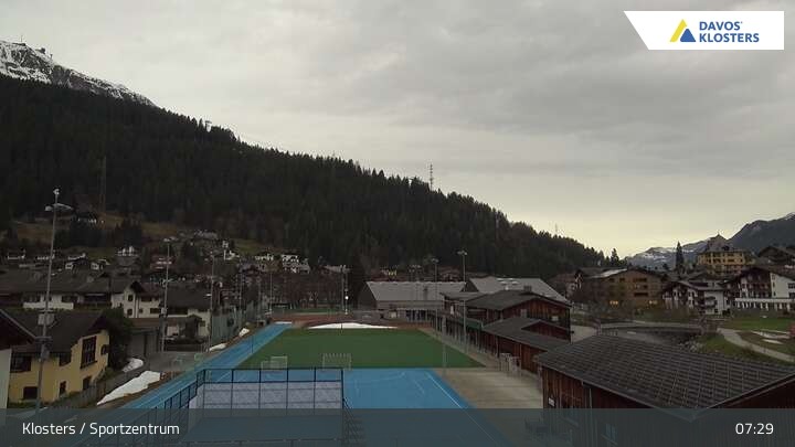 Hier siehst du das Sportzentrum und das Freibad in Klosters