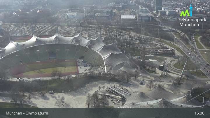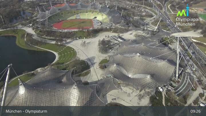 Im nordwestlichen Teil der Münchner Innenstadt befindet sich am Olympiaturm diese Webcam mit dem direkten Blick auf den Olympiapark. Zu sehen sind unter anderem das Olympiastadion und die Olympiahalle, beliebte Orte für Veranstaltungen und Konzerte. Wichtiger Hinweis: Bei großen Veranstaltungen kann es sein, dass die Webcam vorübergehend deaktiviert wird.