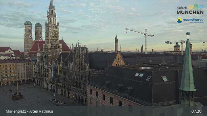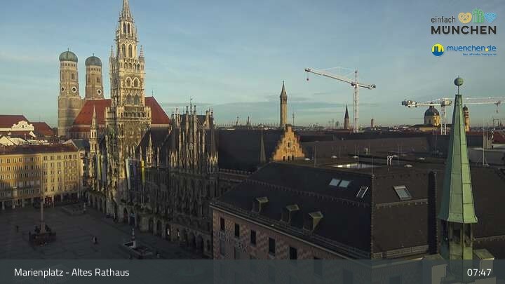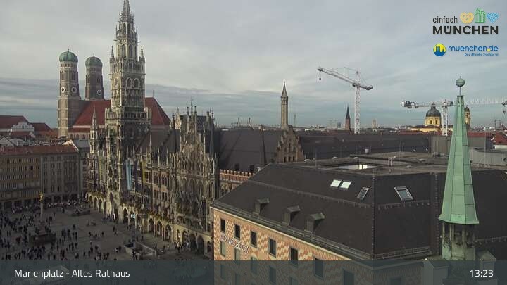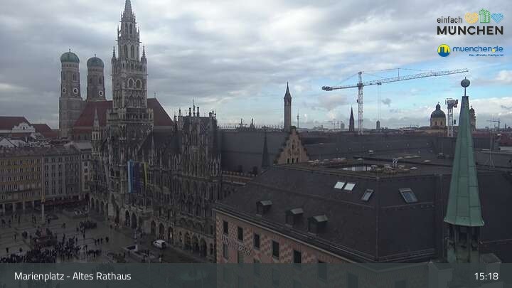 Die Webcam blickt vom Alten Rathaus auf den Marienplatz, der zentrale Platz der Münchener Innenstadt.