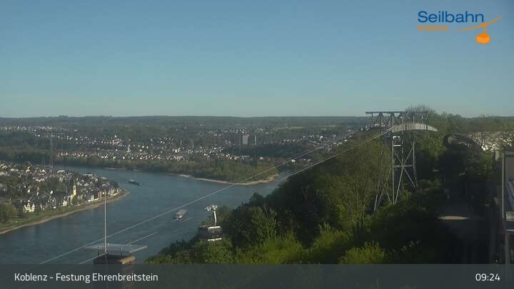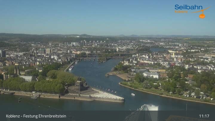 Webcam Koblenz: Blick von der Festung auf Seilbahn und Deutsches Eck, 160 m