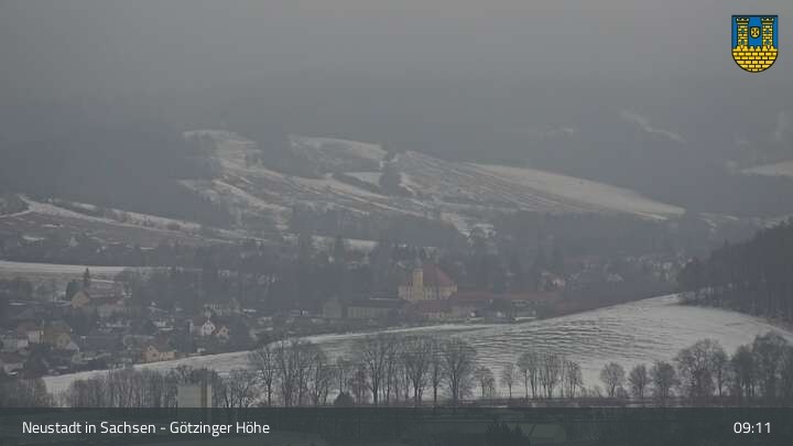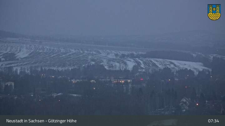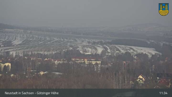 Hier siehst du Neustadt in Sachsen, eine Kleinstadt im Elbsandsteingebirge. Die Webcam befindet sich südlich der Stadt an der Götzinger Höhe.