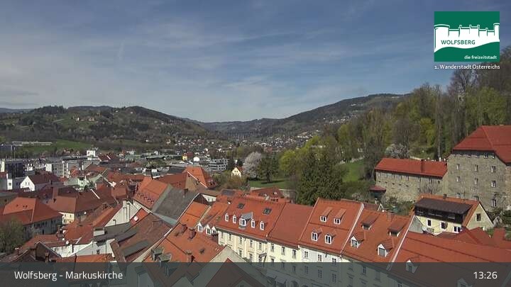 Diese Webcam befindet sich an der Markuskirche im Kärntner Ort Wolfsberg (Lavanttal, Österreich). Du kannst unter anderem die Altstadt sowie das Schloss Wolfsberg erkennen.