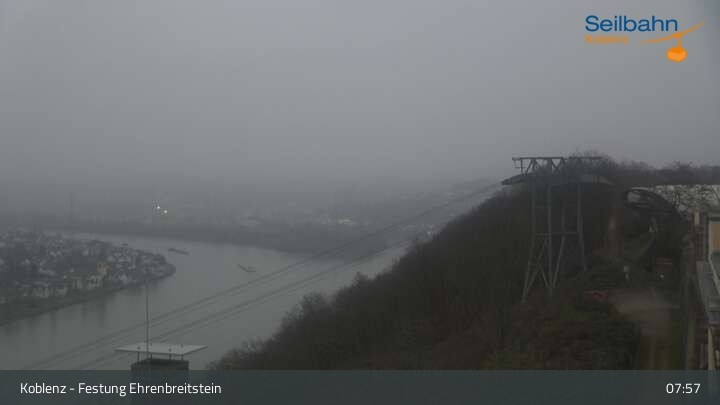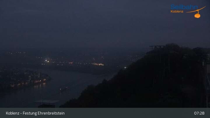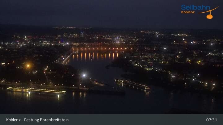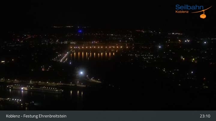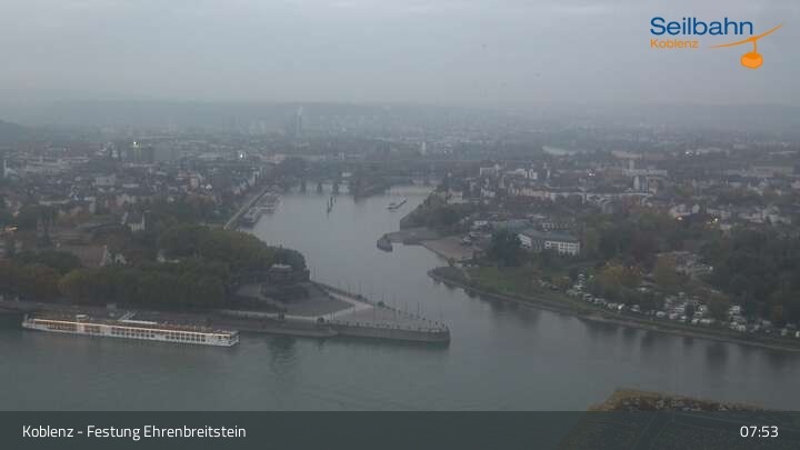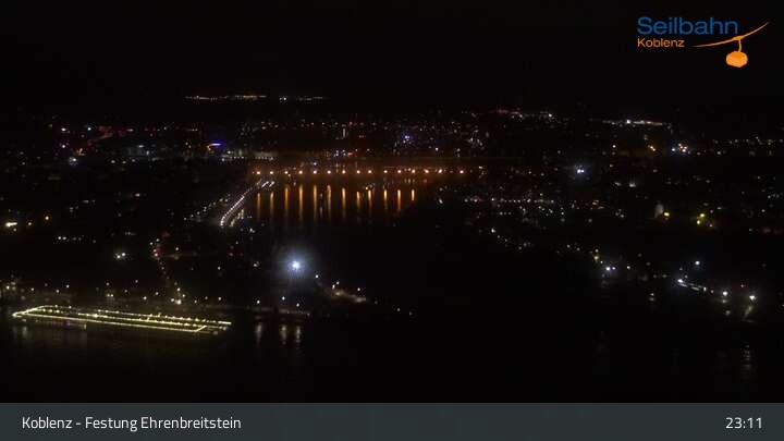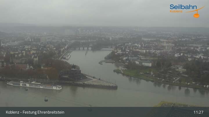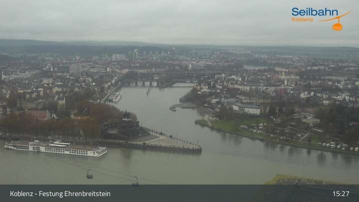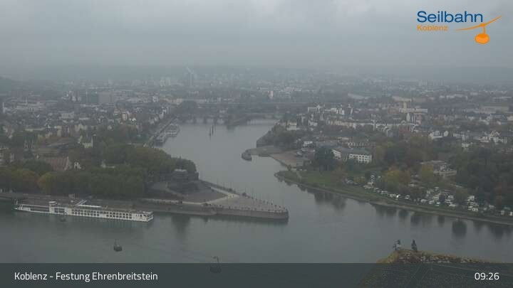 Webcam Koblenz: Blick von der Festung auf Seilbahn und Deutsches Eck, 160 m
