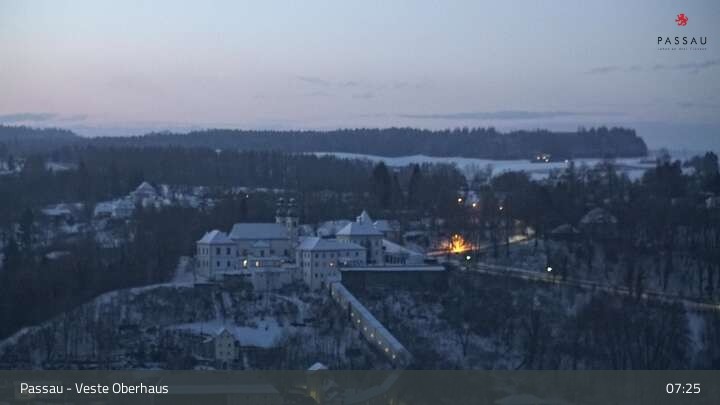 Die Webcam zeigt einen tollen Panoramablick von der Veste Oberhaus auf die Donau und die Altstadt von Passau. Neber der herrschaftlichen Burgfassade sieht man sehr gut die Landzunge zwischen Donau und Inn, auf der die Altstadt mit ihren denkmalgeschützten Häusern liegt. Gut zu erkennen sind unter anderem die Ortspitze am Zusammenfluss der drei Flüsse, das an der Donau liegende Rathaus, der weiße Dom St. Stephan und das erhöhte Kloster Mariahilf in der Innstadt.