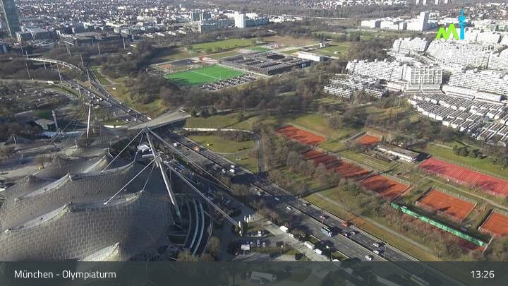Im nordwestlichen Teil der Münchner Innenstadt befindet sich am Olympiaturm diese Webcam mit dem direkten Blick auf den Olympiapark. Zu sehen sind unter anderem das Olympiastadion und die Olympiahalle, beliebte Orte für Veranstaltungen und Konzerte. Wichtiger Hinweis: Bei großen Veranstaltungen kann es sein, dass die Webcam vorübergehend deaktiviert wird.