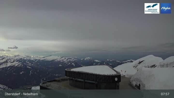 Die Livecam am Nebelhorn zeigt dir die umliegende Bergwelt und die Pisten unterhalb des Gipfels.