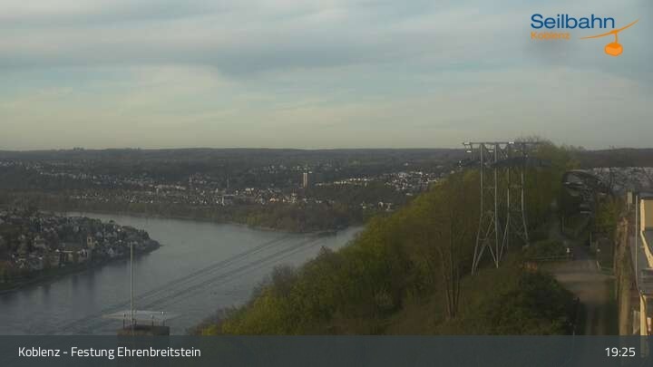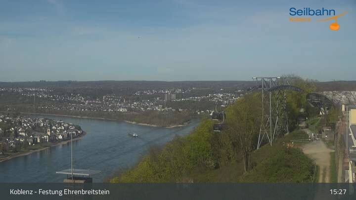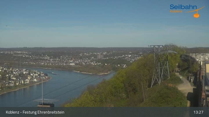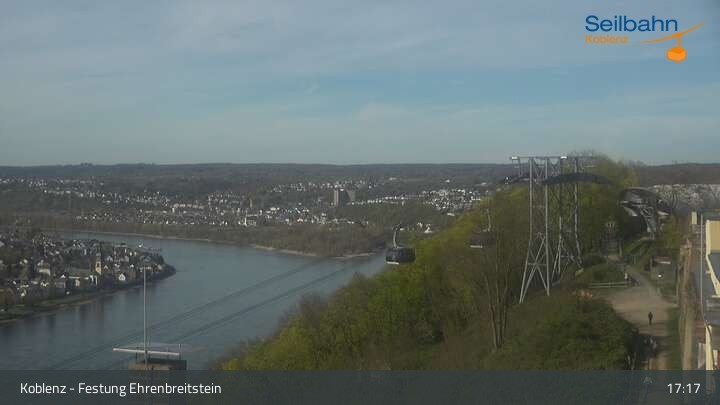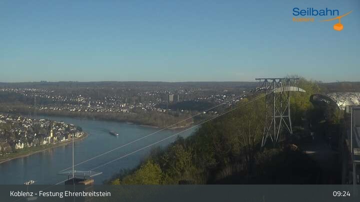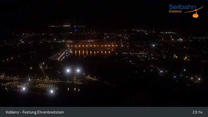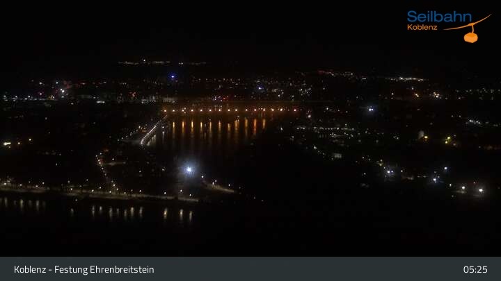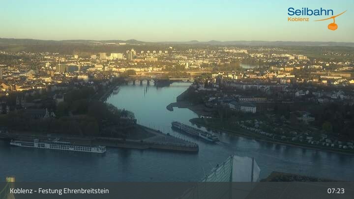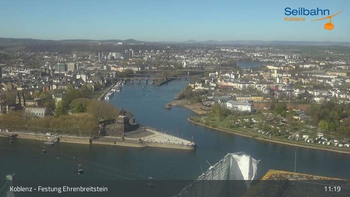 Webcam Koblenz: Blick von der Festung auf Seilbahn und Deutsches Eck, 160 m