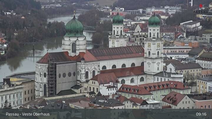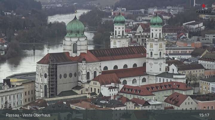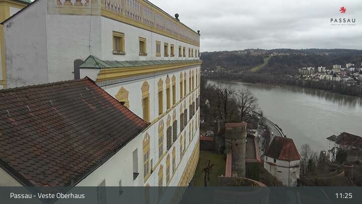 Die Webcam zeigt einen tollen Panoramablick von der Veste Oberhaus auf die Donau und die Altstadt von Passau. Neber der herrschaftlichen Burgfassade sieht man sehr gut die Landzunge zwischen Donau und Inn, auf der die Altstadt mit ihren denkmalgeschützten Häusern liegt. Gut zu erkennen sind unter anderem die Ortspitze am Zusammenfluss der drei Flüsse, das an der Donau liegende Rathaus, der weiße Dom St. Stephan und das erhöhte Kloster Mariahilf in der Innstadt.