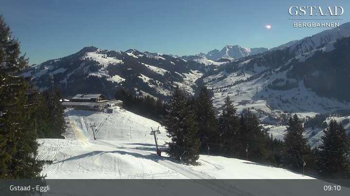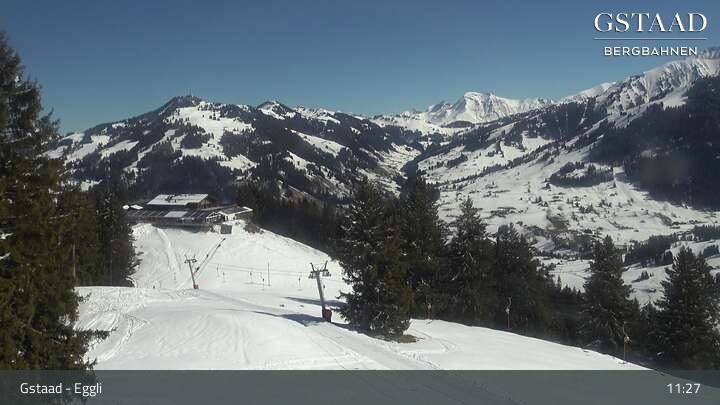 Die Webcam bei Gstaad zeigt das Bergrestaurant Eggli. Positioniert ist sie an der Bergstation der Saanen-Eggli Sesselbahn.