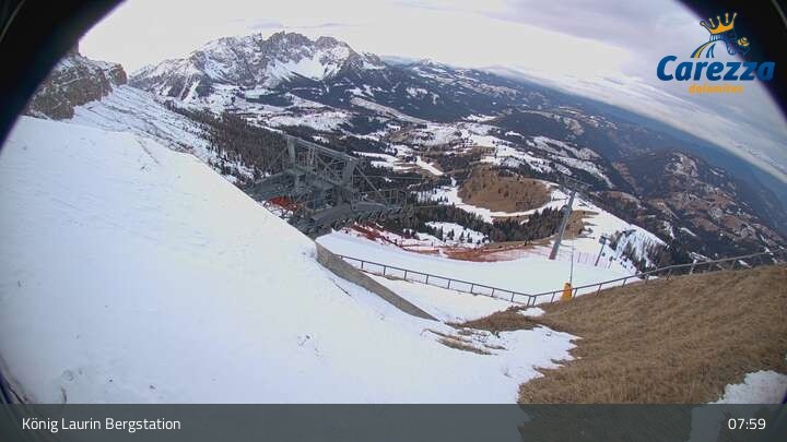 Die Webcam eröffnet von der Kölner Hütte das Panorama zum Latemar. Du siehst hier auch gut die neue König Laurin Gondelbahn mit unterirdischer Bergstation.