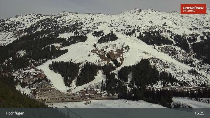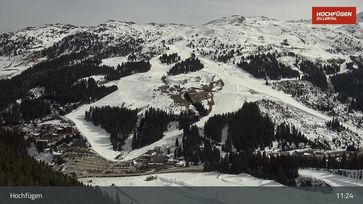 Die Webcam zeigt eine Panoramaufnahme in Hochfügen am Klausboden in der Wanderregion Zillertal.