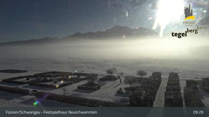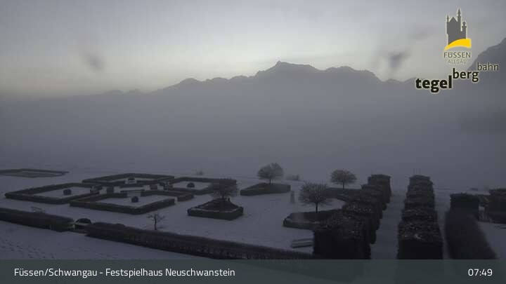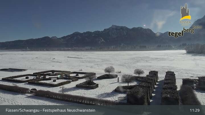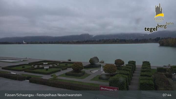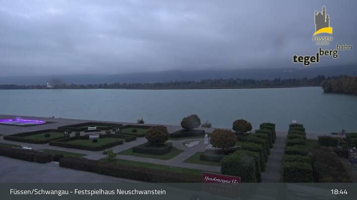 Die Webcam blickt auf den Garten von Ludwigs Festspielhaus in Füssen am Forggensee.
